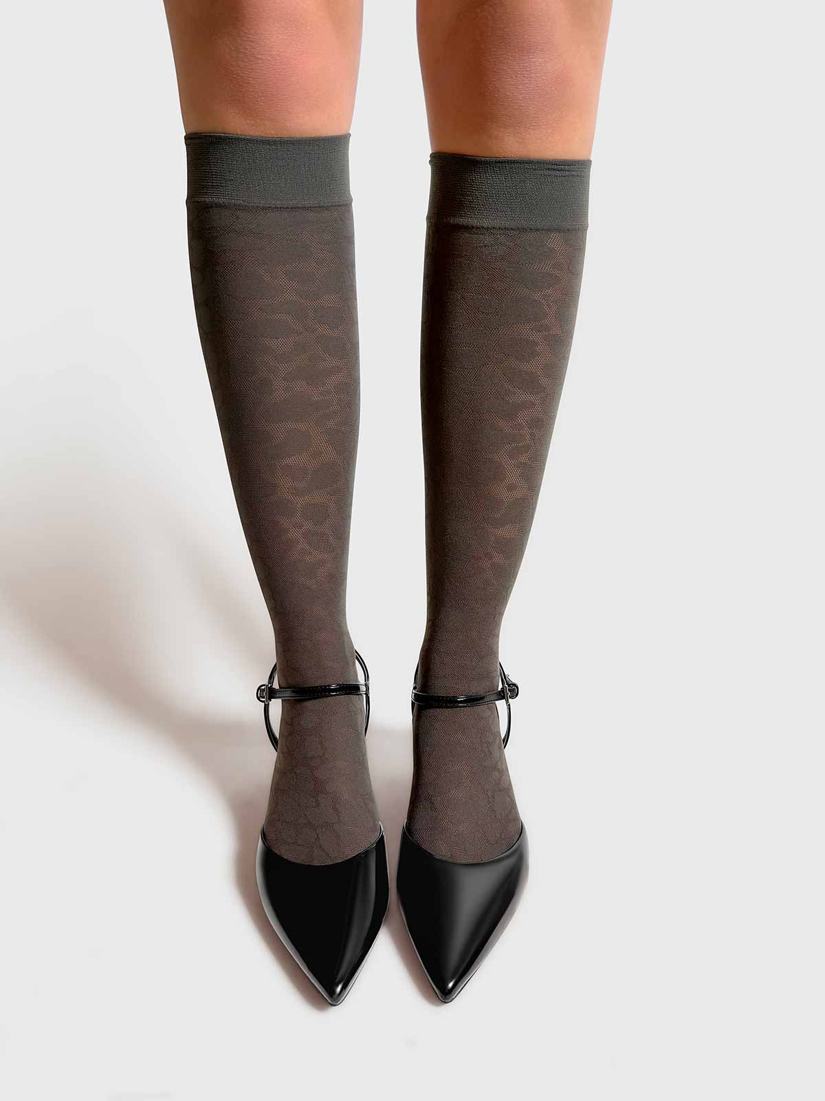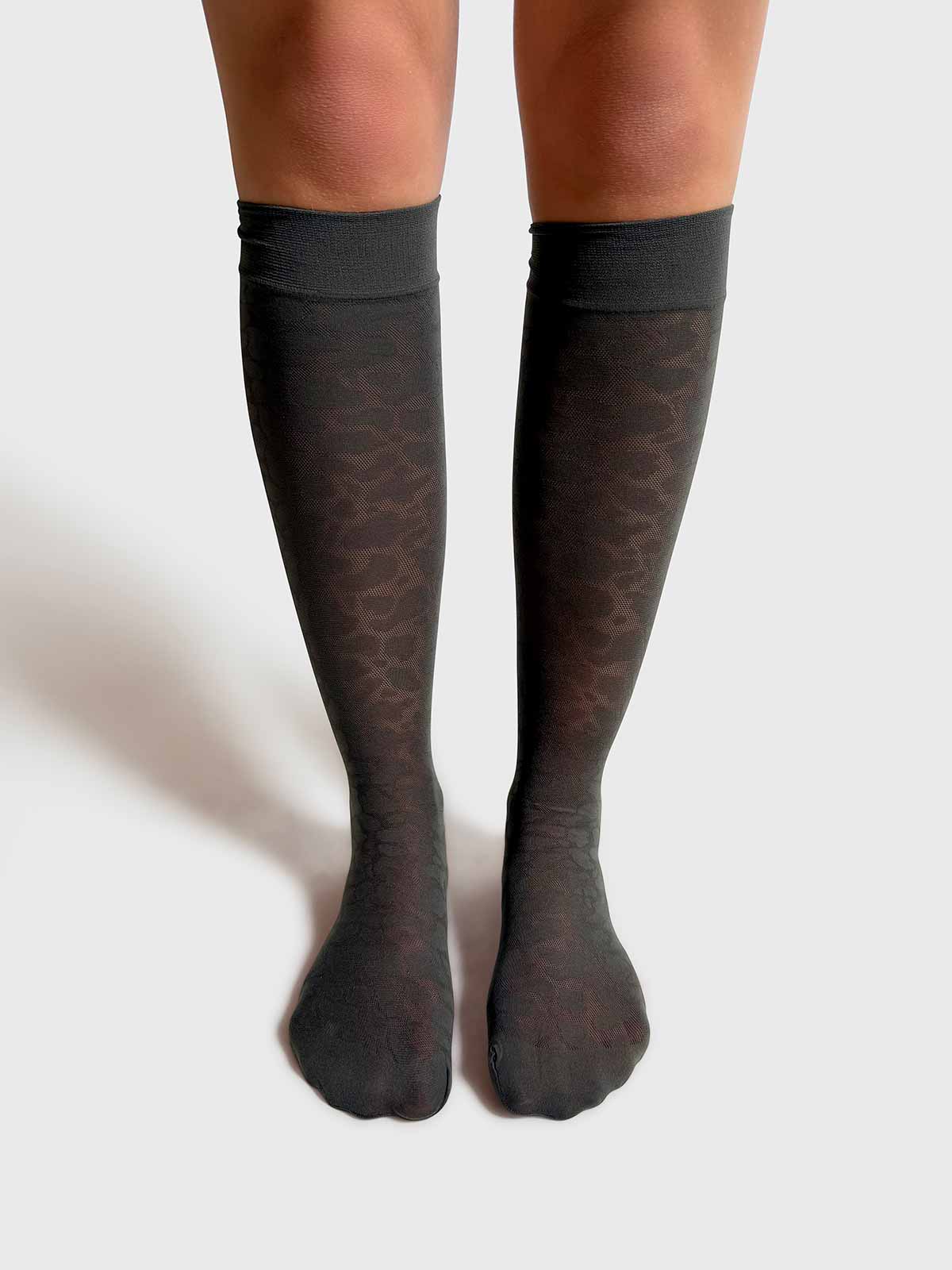 When knitting these knee-highs, we use mainly recycled yarn. The soft but strong border gives a comfortable yet secure fit and we added a reinforced toe. Designed to last in style, quality and to be worn in any shoe. Each pair is screened individually by hand before shipping.