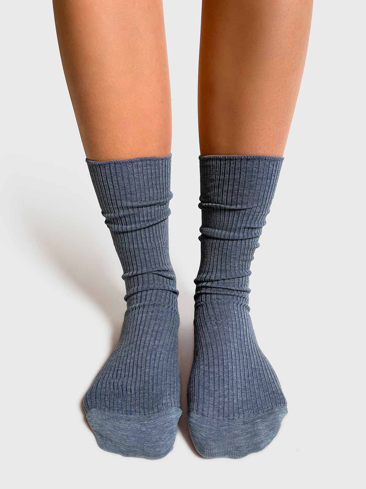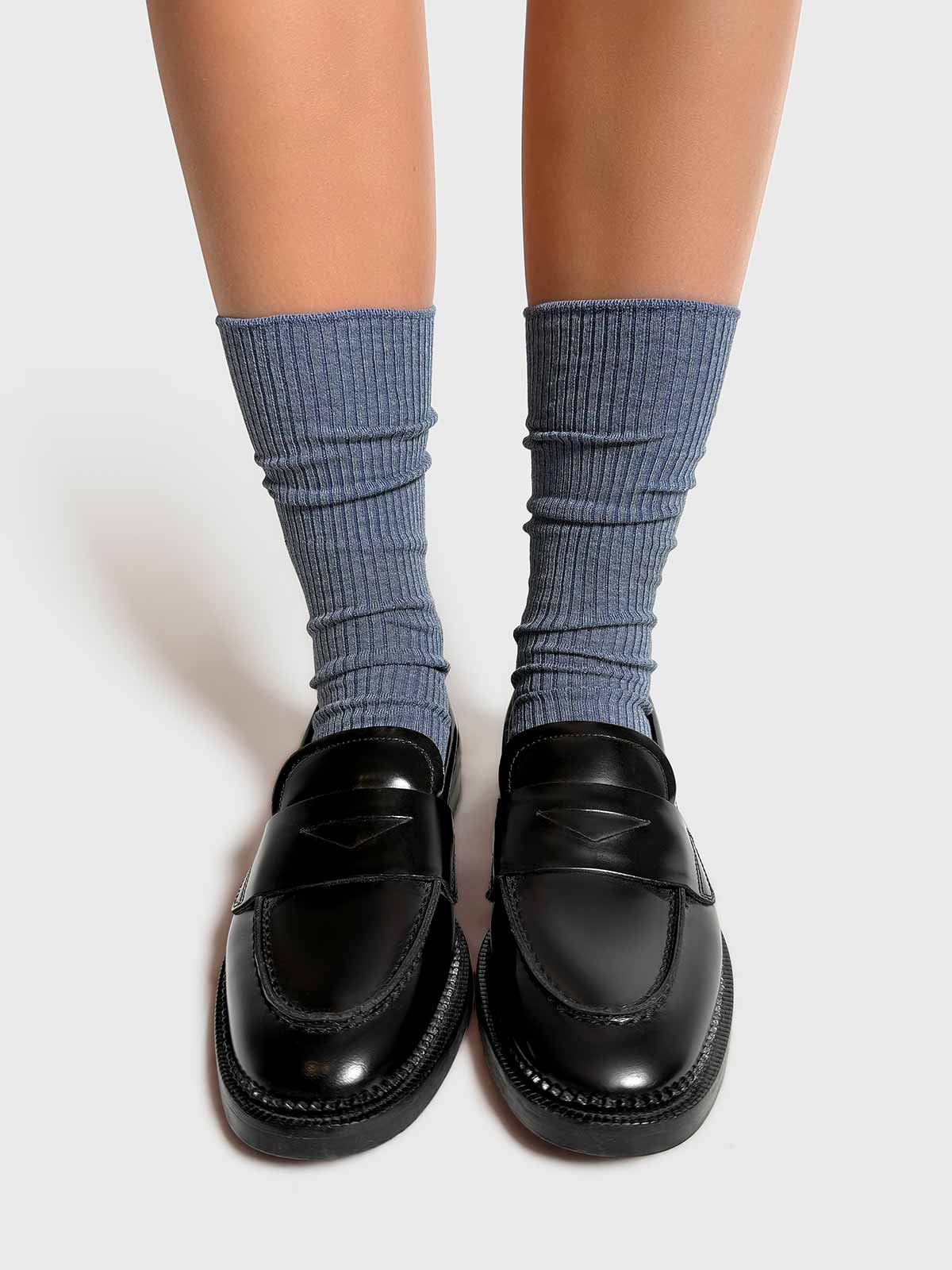 These socks feature a refined fit, accentuated by a thoughtful, tightened rib detail around the ankle, ensuring a snug and secure fit.