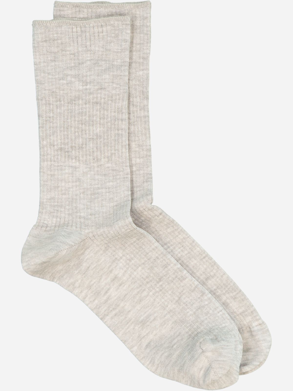 These socks feature a refined fit, accentuated by a thoughtful, tightened rib detail around the ankle, ensuring a snug and secure fit.